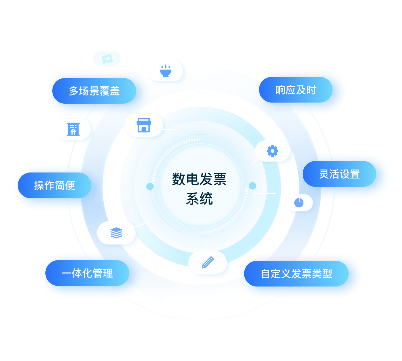 灵活配置适应餐饮、酒店、零售等各行业特点,一套方案满足各类业态开票需求,省去多系统维护的繁琐