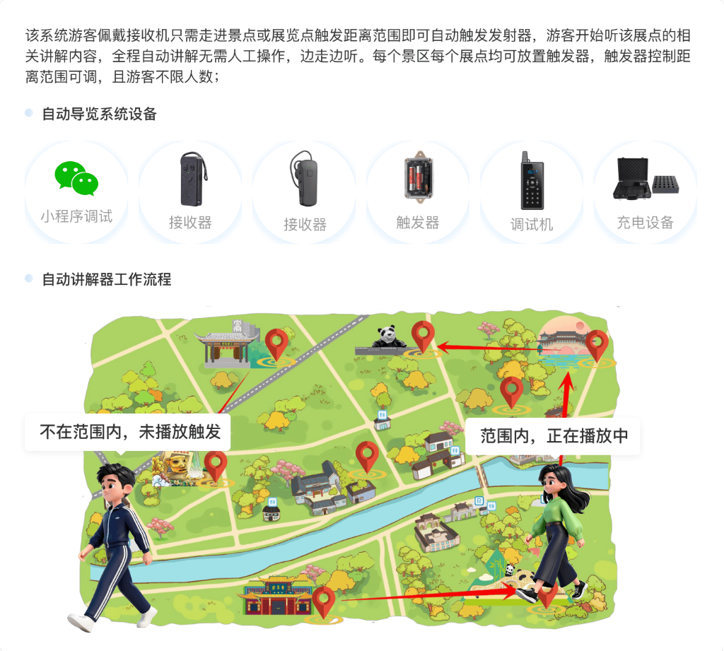 以触摸屏为核心,支持图像、音屏等多媒体展示,可实现展区路线信息查询、为游客提供自主化服务