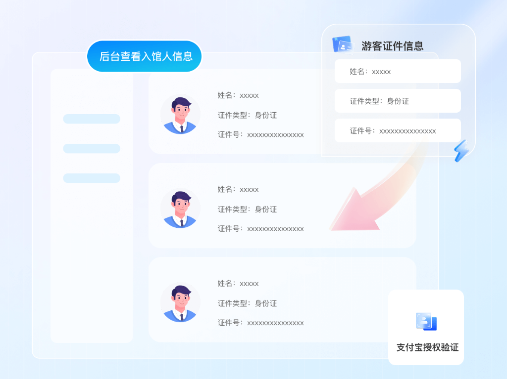 游客无须购票、无需预约,直接刷身份证或人脸验证入园。系统后台自动生成游客预约订单。可实时查看游客入园信息。