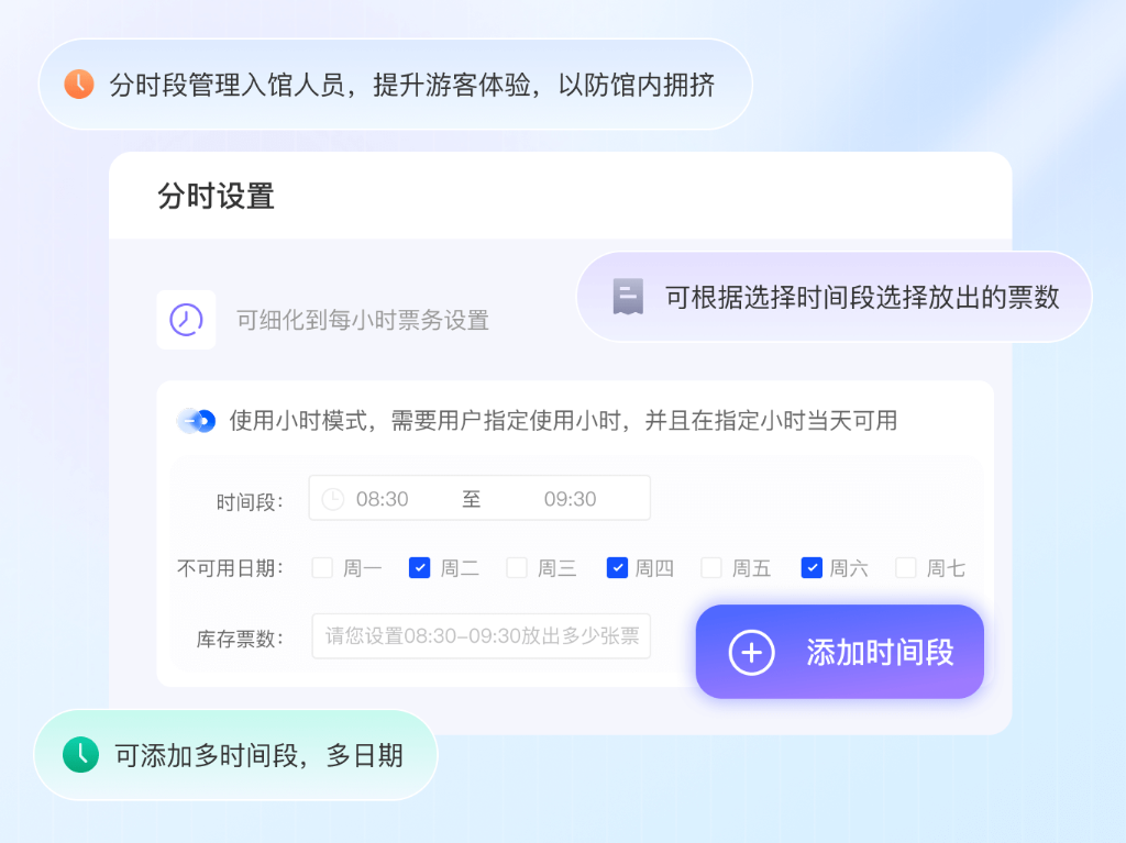 为数字场馆,VR体验馆,科技馆等新奇体验类目的文旅场馆提供窗口售票、各大OTA打通、搭建小程序商城,解决会员卡,手环,套票、人脸多次出入园
