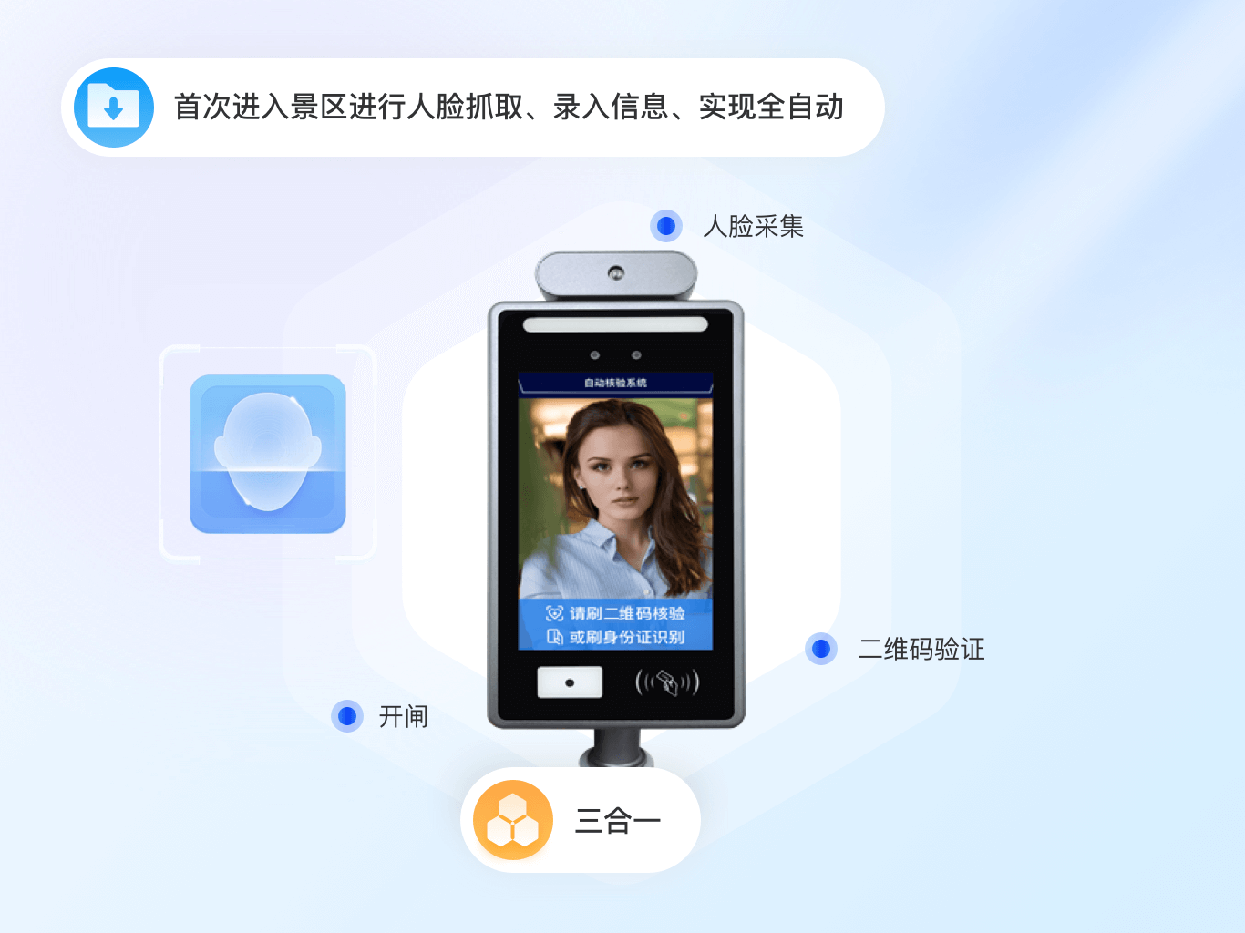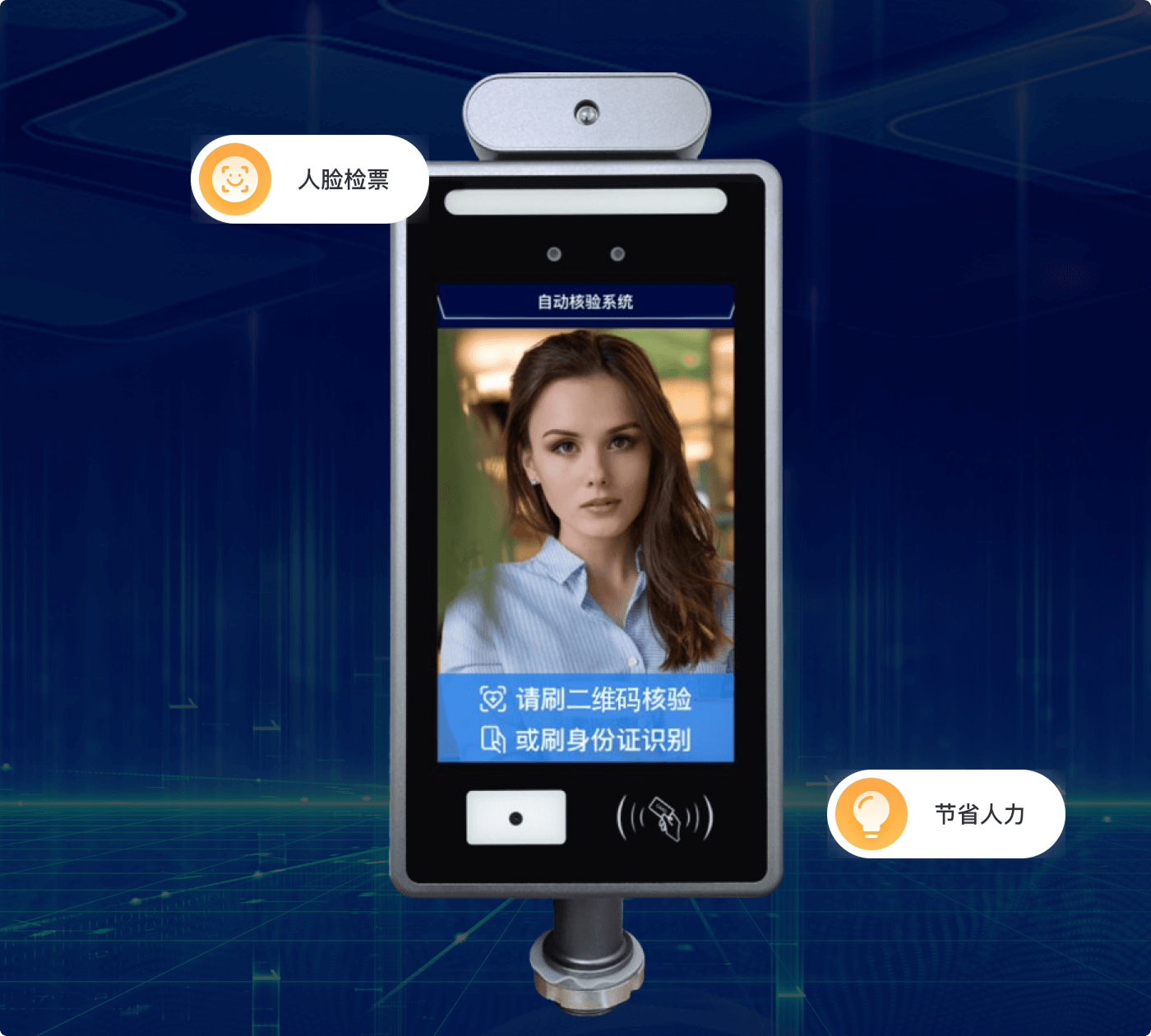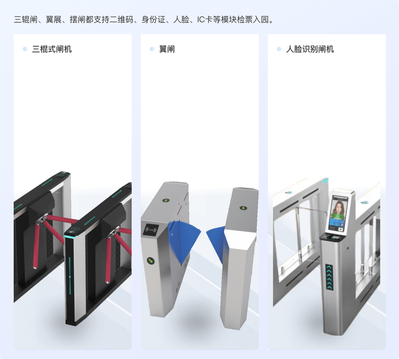 • 闸机:自动闸机检票,支持二维码、身份证、人脸、IC卡等多种方式
